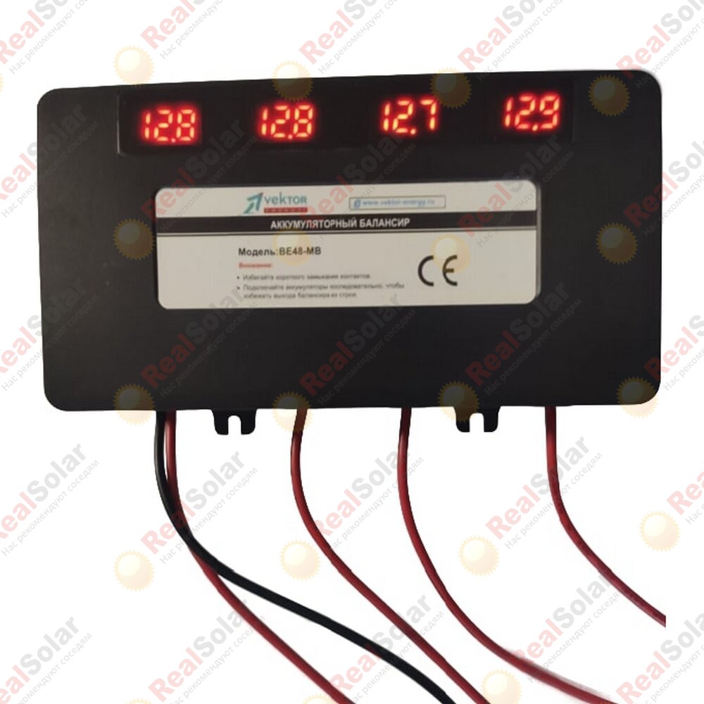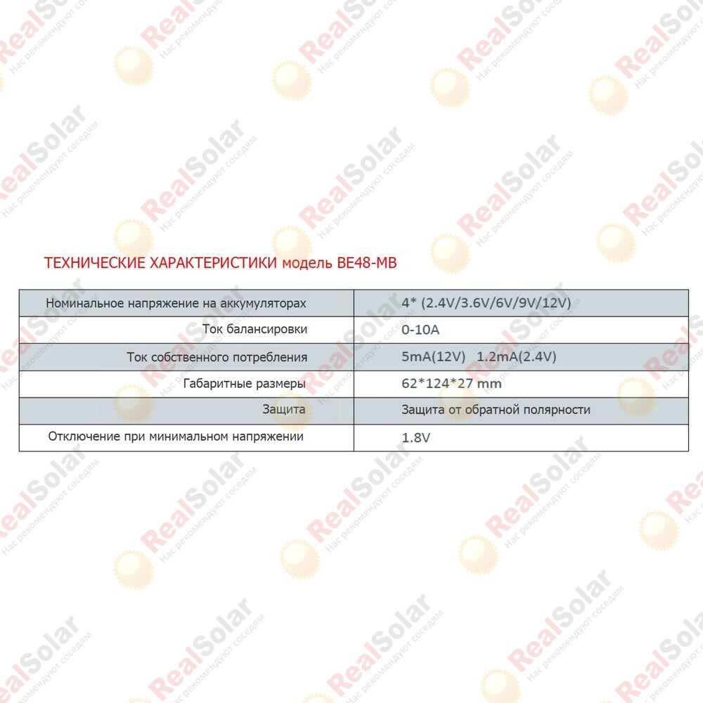 Балансир TAICO ВЕ48M выравнивает напряжение между двумя соседними аккумуляторами, если разница по напряжению между этими аккумуляторами составит более 10 мВ, балансир шунтирует ток от одной батареи (с более высоким напряжением) к другой батарее (с более низким напряжением) до тех пор, пока напряжение на батареях не выровняется. Эквалайзер обеспечивает автоматическое поддержание одинаковых напряжений на 4-х последовательно соединенных аккумуляторах и препятствует перезаряду одной батареи и недозаряду другой, что способствует увеличению срока службы аккумуляторов. Батарейный эквалайзер обладает минимальным энергопотреблением (всего 5 мА) и автоматически включается при заряде АКБ. При необходимости, можно увеличить ток балансировки, для этого допускается параллельное подключение нескольких балансиров.