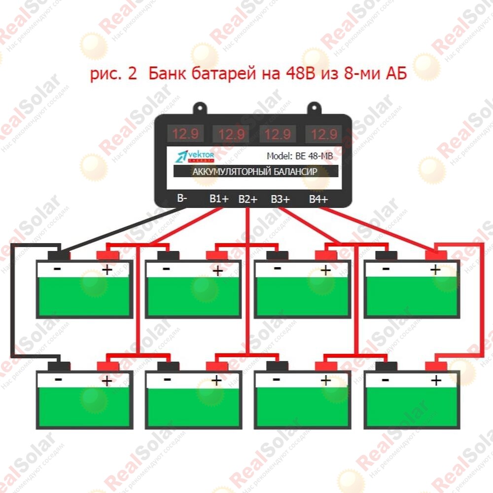 Схема подключения к восьми последовательно-параллельно соединенным 12В батареям