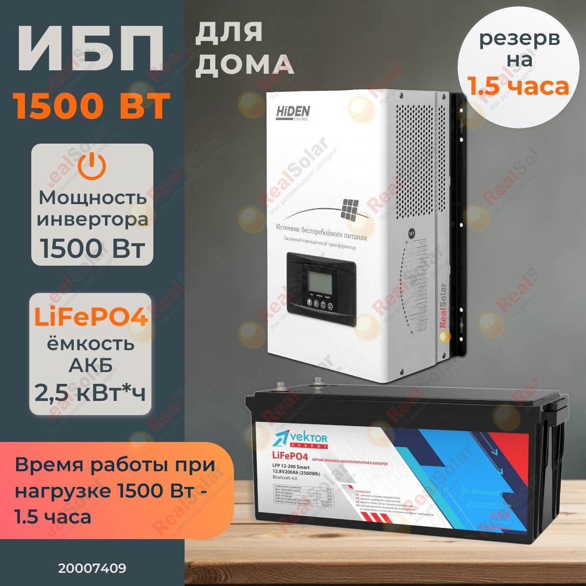 Комплект бесперебойного питания для частного дома мощностью до 1500Вт с литиевым LiFePo4 аккумулятором 200Ач