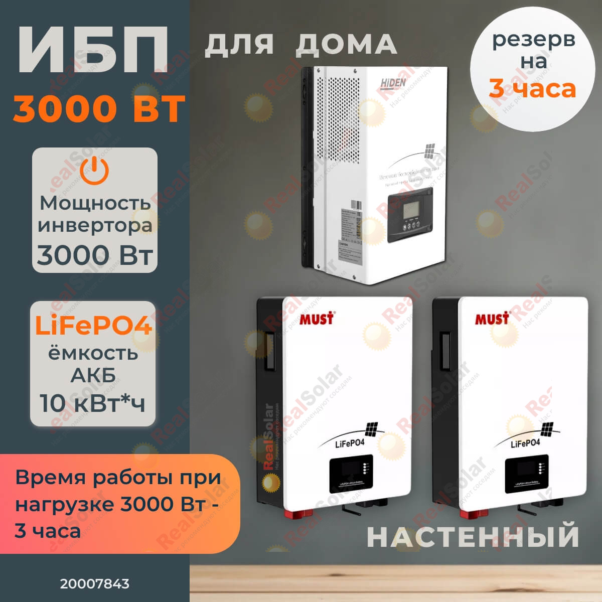 Время автономной работы при постоянной нагрузке 1000 Вт составит около 10 часов. При необходимости увеличить время автономной работы, наши клиенты приобретают дополнительный АКБ (можно изменить количество во вкладке "состав комплекта"), из расчета, что один аккумулятор ёмкостью 200 Ач/25,6 В запасает 5120 Вт/часов энергии.