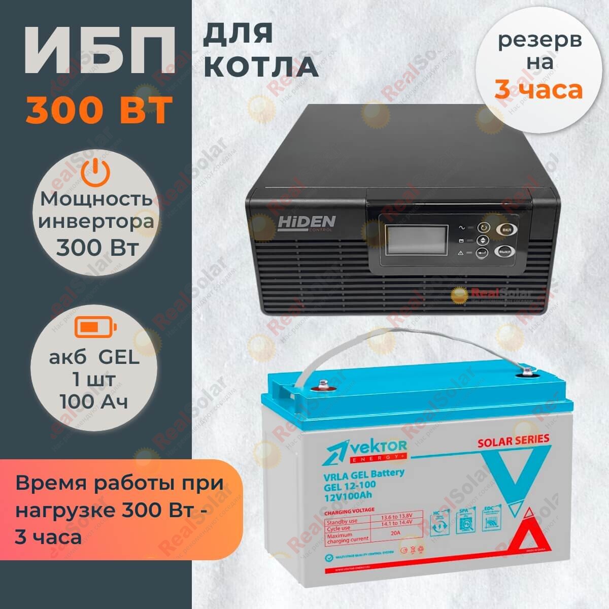 Комплект бесперебойного питания для котла мощностью до 300Вт с синусным инвертором