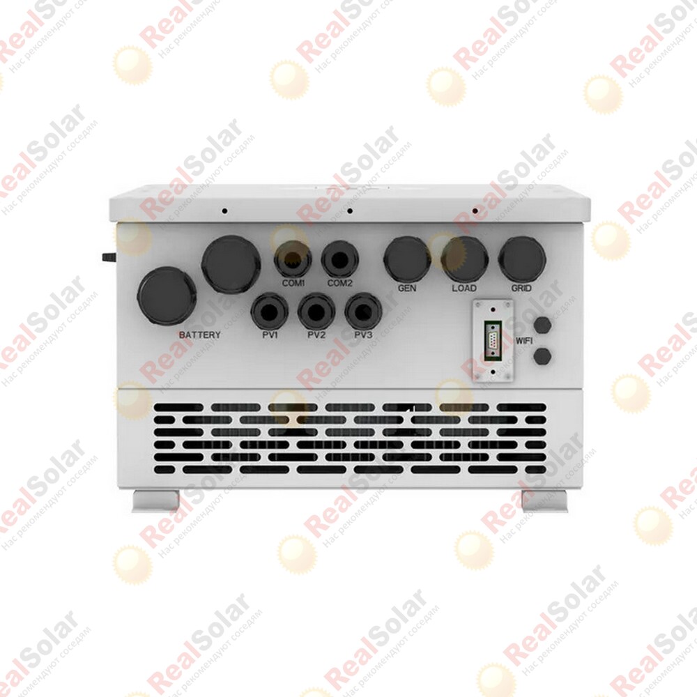 Высоковольтный (DC 500В) встроенный МРРТ контроллер оптимален для работы с солнечными панелями - мощностью до 550Вт. Инвертор поддерживает подключение как свинцово-кислотных, так и литиевых аккумуляторов в диапазоне напряжений 40-60В. При использовании литиевых аккумуляторов, его можно подключить к инвертору с помощью порта CAN и передавать основную информацию (емкость, остаток заряда, ток зарядки, температура) напрямую в инвертор. В ином варианте можно задать все параметры вручную.