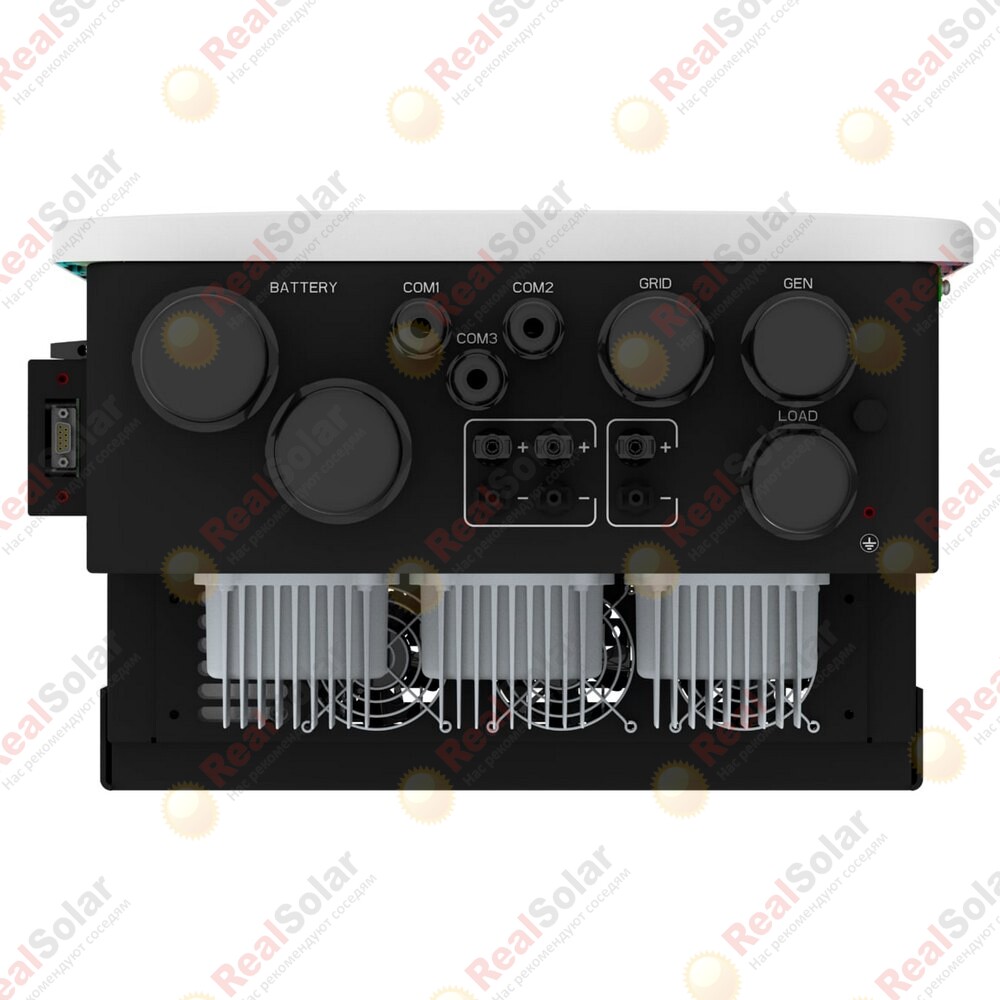Высоковольтный (DC 800В) встроенный МРРТ контроллер оптимален для работы с солнечными панелями - мощностью до 550Вт. Инвертор поддерживает подключение как свинцово-кислотных, так и литиевых аккумуляторов в диапазоне напряжений 40-60В. При использовании литиевых аккумуляторов, его можно подключить к инвертору с помощью порта CAN и передавать основную информацию (емкость, остаток заряда, ток зарядки, температура) напрямую в инвертор. В ином варианте можно задать все параметры вручную.