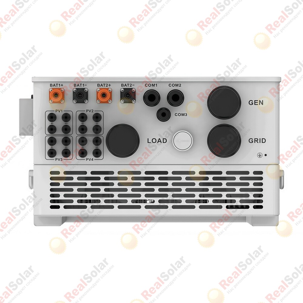 Высоковольтный (DC 1000В) встроенный МРРТ контроллер оптимален для работы с солнечными панелями - мощностью до 550Вт. Инвертор поддерживает подключение как свинцово-кислотных, так и литиевых аккумуляторов в диапазоне напряжений 160-700В. При использовании литиевых аккумуляторов, его можно подключить к инвертору с помощью порта CAN и передавать основную информацию (емкость, остаток заряда, ток зарядки, температура) напрямую в инвертор. В ином варианте можно задать все параметры вручную.