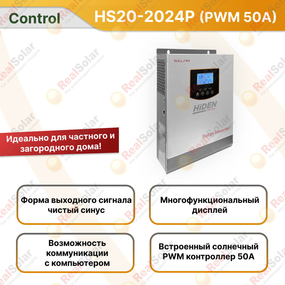 Гибридные инверторы Hiden Control HS20-2024P могут работать как обычные автономные ИБП, но при этом имеют встроенный солнечный PWM контроллер, что позволяет существенно увеличивать время автономии за счет установки солнечных панелей.
