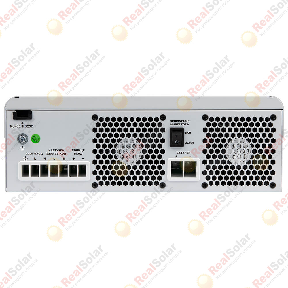 Применяется для небольшой солнечной электростанции с возможностью подключения солнечных панелей до 4 кВт и аккумуляторов напряжением 24 Вольт. Сочетает в себе функционал инвертора и солнечного зарядного устройства с высоковольтным контроллером MPPT.