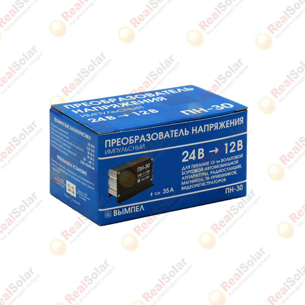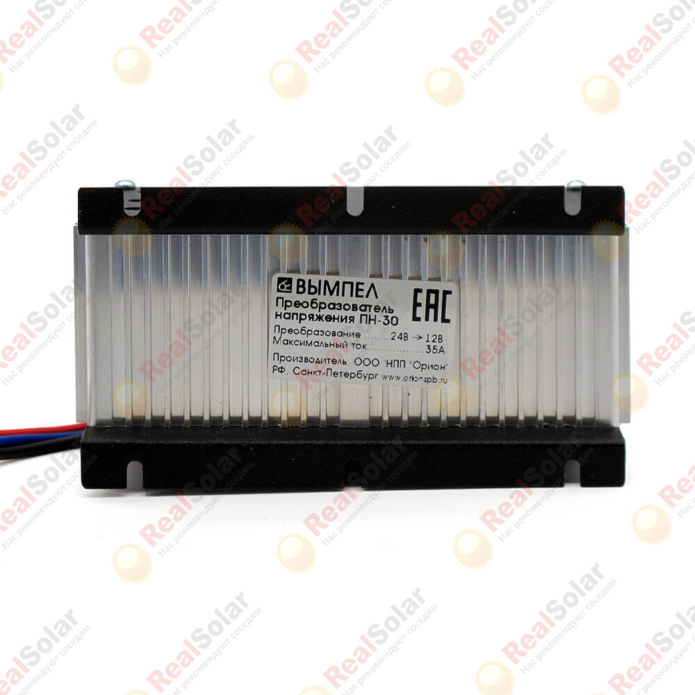 Преобразователь напряжения "ВЫМПЕЛ" преобразует постоянное напряжение 24 В бортовой сети автомобиля в постоянное 12В. Может использоваться для питания 12-ти вольтовой бортовой автомобильной аппаратуры, радиостанций, магнитол, ТВ-приемников, видеорегистраторов.