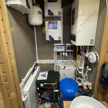 Задача была не совсем простой, т.к. на участке основное питаение приходит в баню, и из бани кабелями питается дом, и хоз постройки. Требовалось установить всю установку в микро-котельной бани, и далее одну резервную фазу переподключить к дому, хоз постройкам. В доме соответсвенно выделить в щите нагрузки для резервирования и переключить буквально все остальные, максимально соблюдая балансы мощности по оставшимся фазам. И нам это удалось...