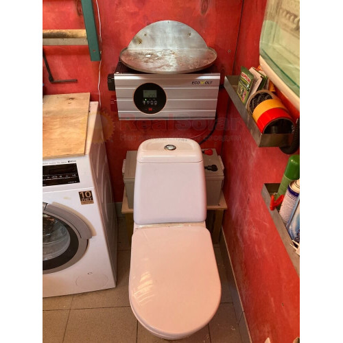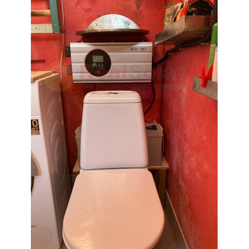Для решения задачи было предложено использовать недорогой источник бесперебойного питания Эковольт PRO мощностью 2 кВт, с гелевым аккумулятором емкостью 200 Ач. Что позволило подключить все желаемые нагрузки. Система резервного питания компактно разместилась в котельной за унитазом. Это позволило максимально экономить место, и сделать систему резервного электроснабжения практически незаметной.
