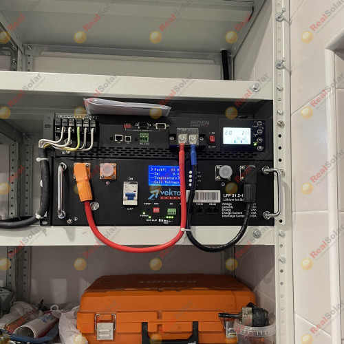 Главная/Наши монтажи, история/Резервное электроснабжение/ИБП для дома/ДНП Приозерное. Резервное электропитание для дома с инвертором Hiden 5кВт в стойку 19" + литиевый аккумулятор 100Ач + 3 стабилиз