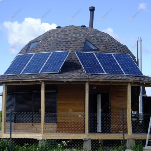 Главная/Наши монтажи, история/Солнечные электростанции/дер. Новая Буря. Монтаж солнечной электростанции на круглой крыше + инвертор МАП + 16 аккумуляторов