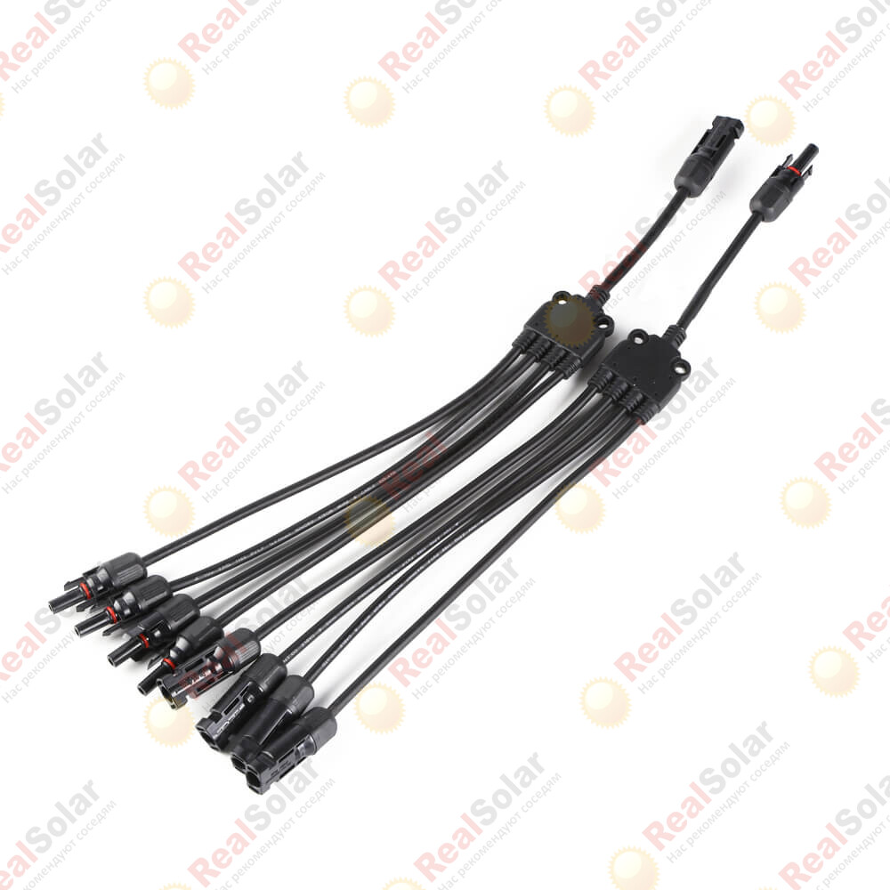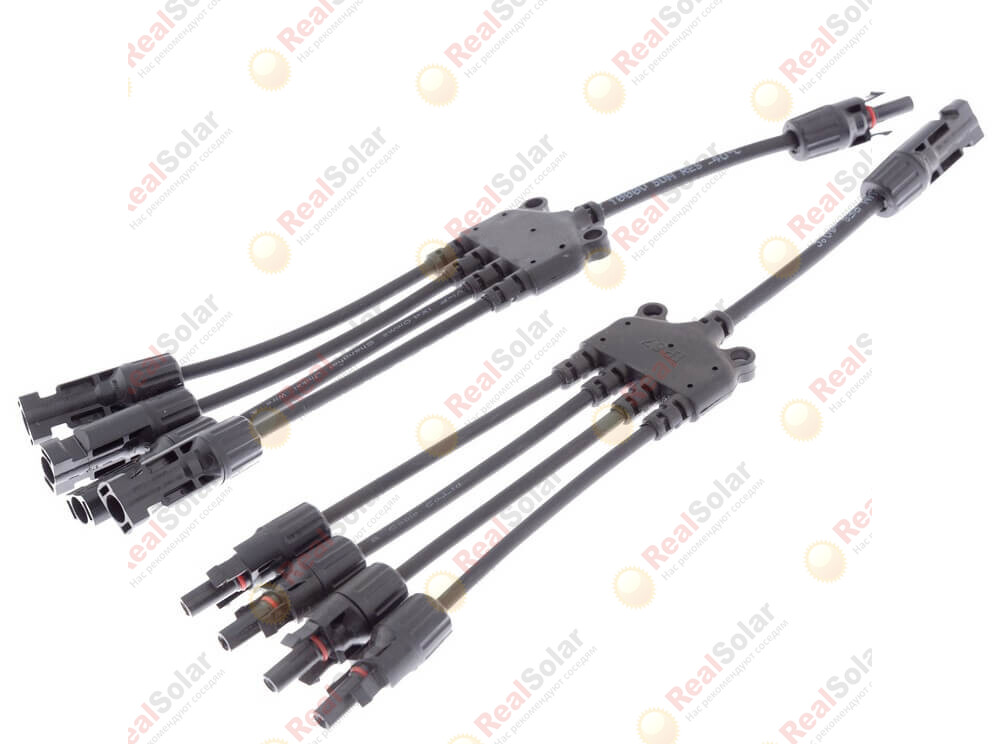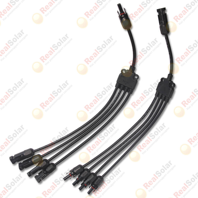 Коннекторы MC4Y 4 in 1 с кабелем для соединения до 4-х солнечных панелей параллельно в электрическую цепь. Представляют собой влагозащищенные герметичные разъемы для коммутации солнечных батарей, которые применяются во всем мире. Подходят для всех типов солнечных панелей.