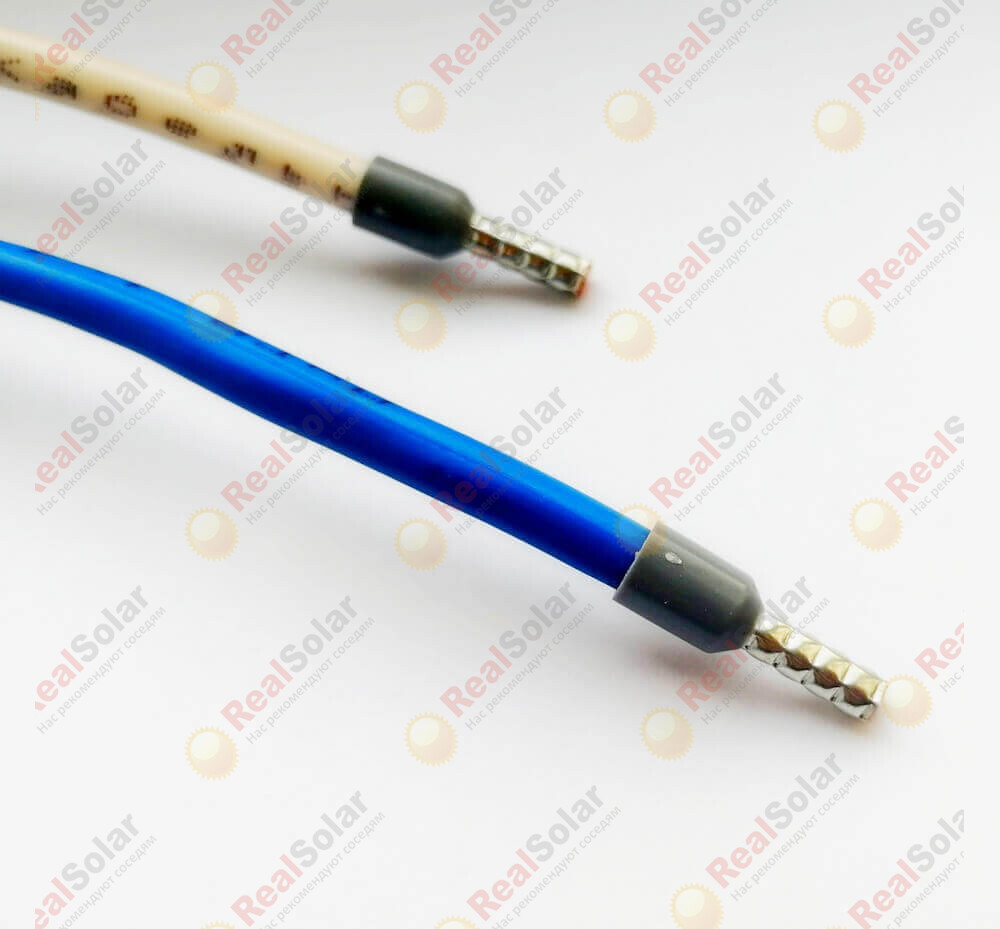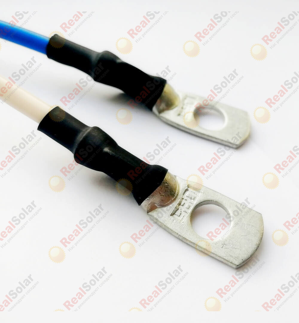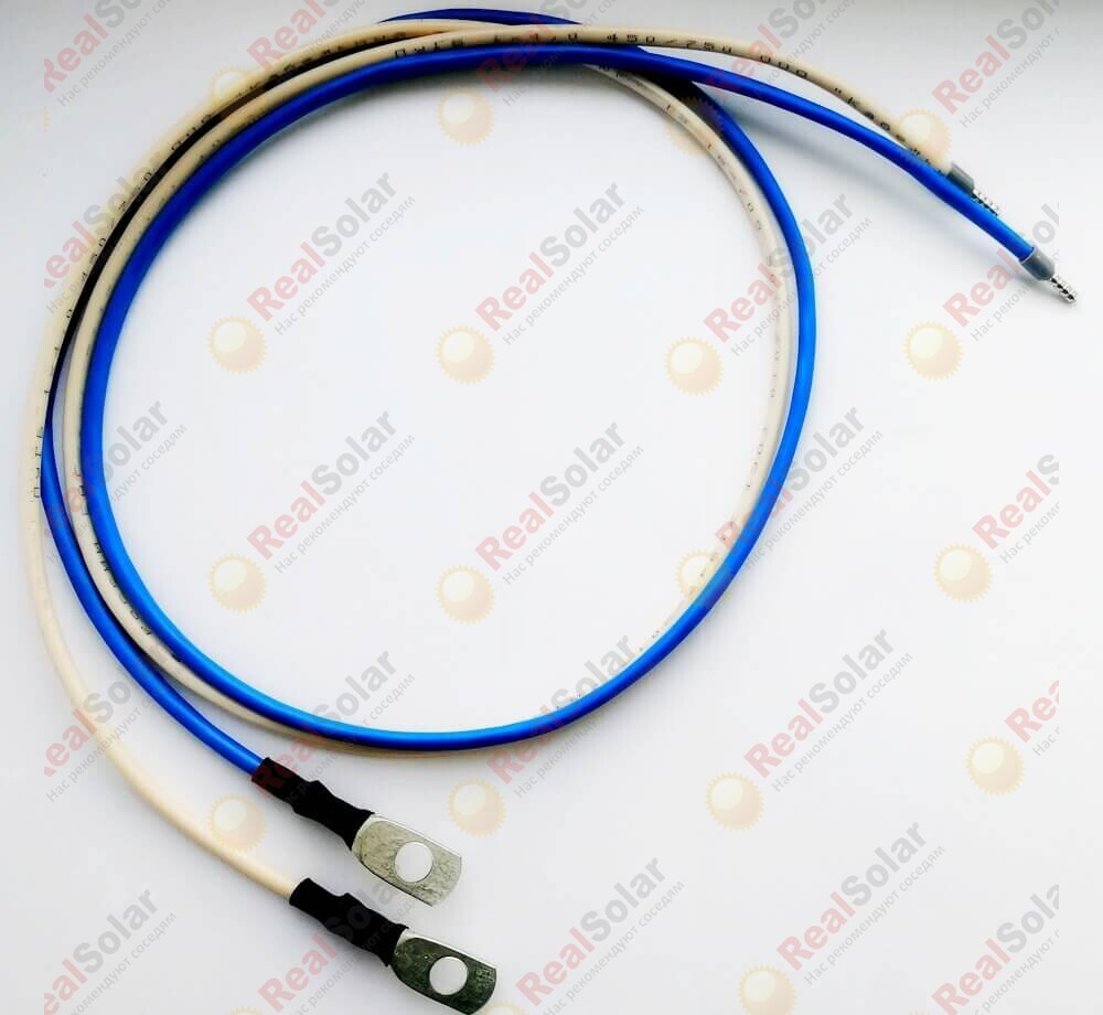 Кабель акб - контроллер заряда сечением 4мм² длиной 1,5 метра используется для удобного и быстрого подключения аккумуляторной батареи и контроллера заряда для солнечных батарей. Используется медный провод ПуГВнг с изоляцией не поддерживающей горение. На кабеле, с одной стороны обжат луженый наконечник (под болт) на аккумулятор, а с другой стороны мягкий наконечник типа "гильза"..
