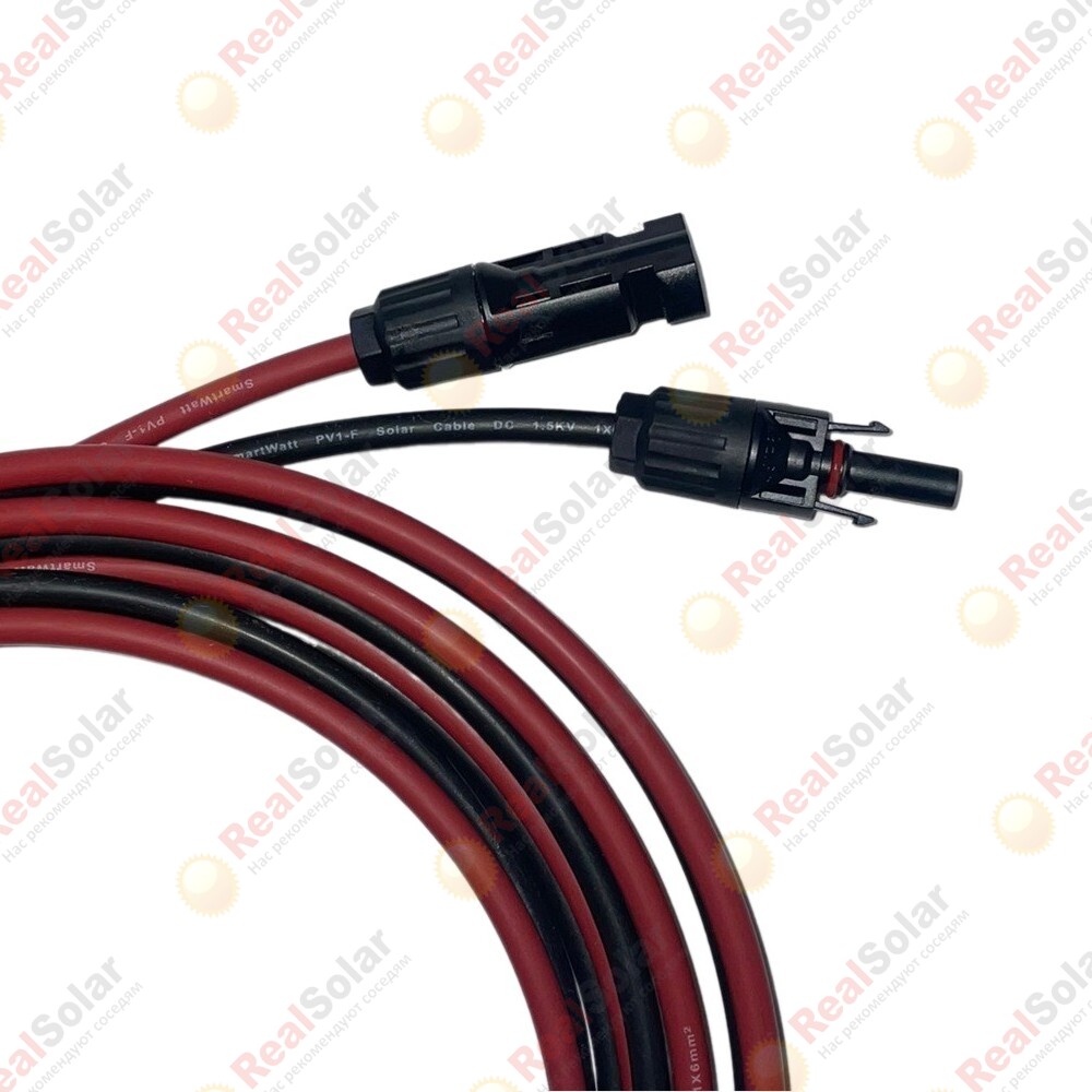БрендRealsolar Длина20 м Сечение кабеля6 мм2 Макс. ток30 А Тип кабеляСолнечный кабель Макс. напряжение1500 В Цвет кабеляЧерный, Красный Гарантия, лет1 год Вес1,62 кг