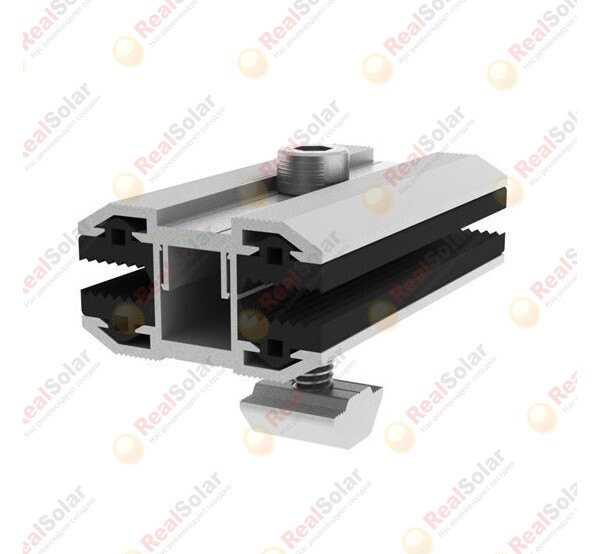 Центральный зажим (стекло) предназначен крепления безрамочных солнечных модулей, между собой, на направляющем профиле.