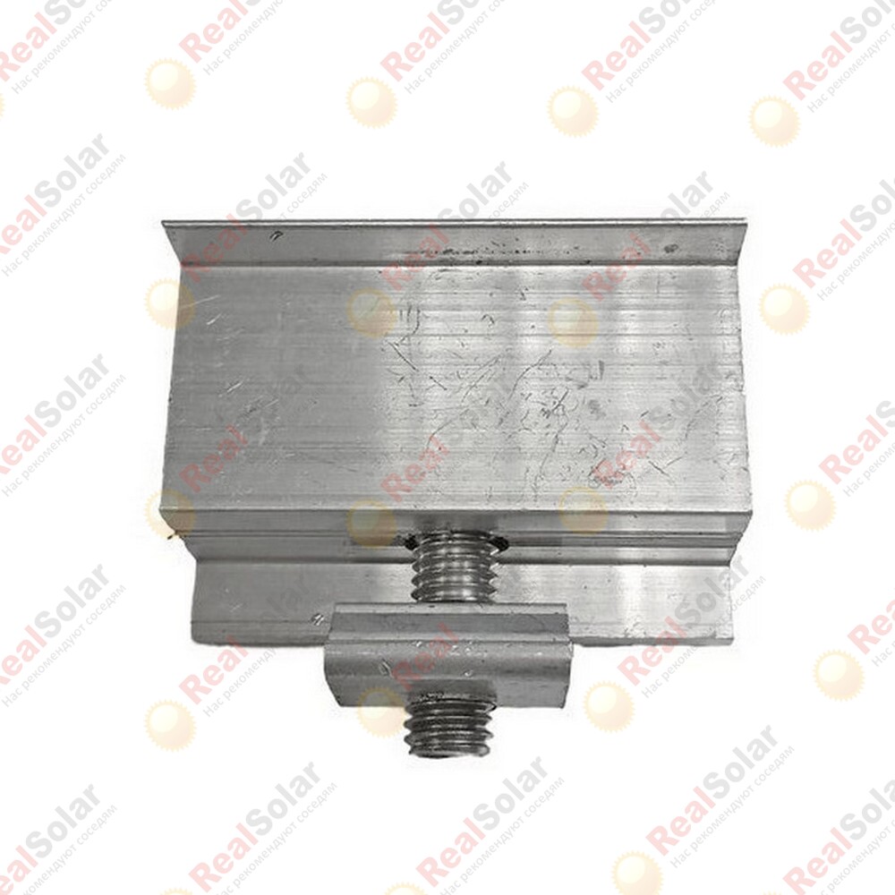 Зажим концевой 30 мм предназначен для бокового крепления солнечного модуля толщиной 35 мм на направляющем профиле.