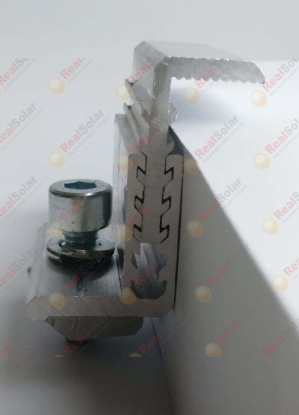 Для монтажа солнечных батарей компания Реалсолар предлагает профессиональные крепления из анодированного алюминия. Крепления позволяют быстро и надежно закрепить солнечные модули практически на любой крыше. Все метизы (болты, гайки, шайбы и т.п.) изготовлены из нержавеющей стали и прослужат не менее 50 лет.