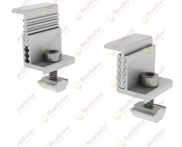 Зажим концевой регулируемый 35-50 мм предназначен для бокового крепления солнечного модуля толщиной 35-50 мм на направляющем профиле.