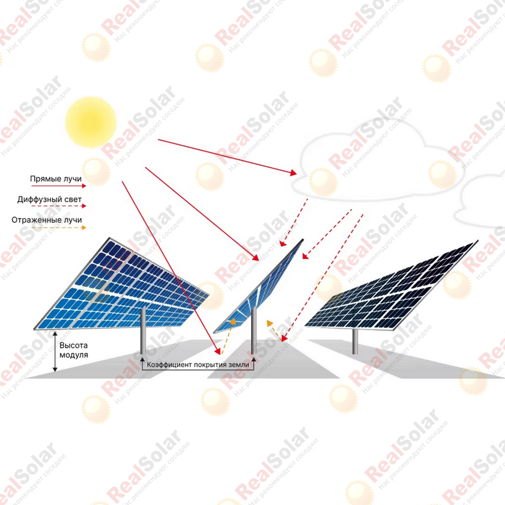 - отражения части солнечной энергии на лицевую и тыльную стороны батареи;