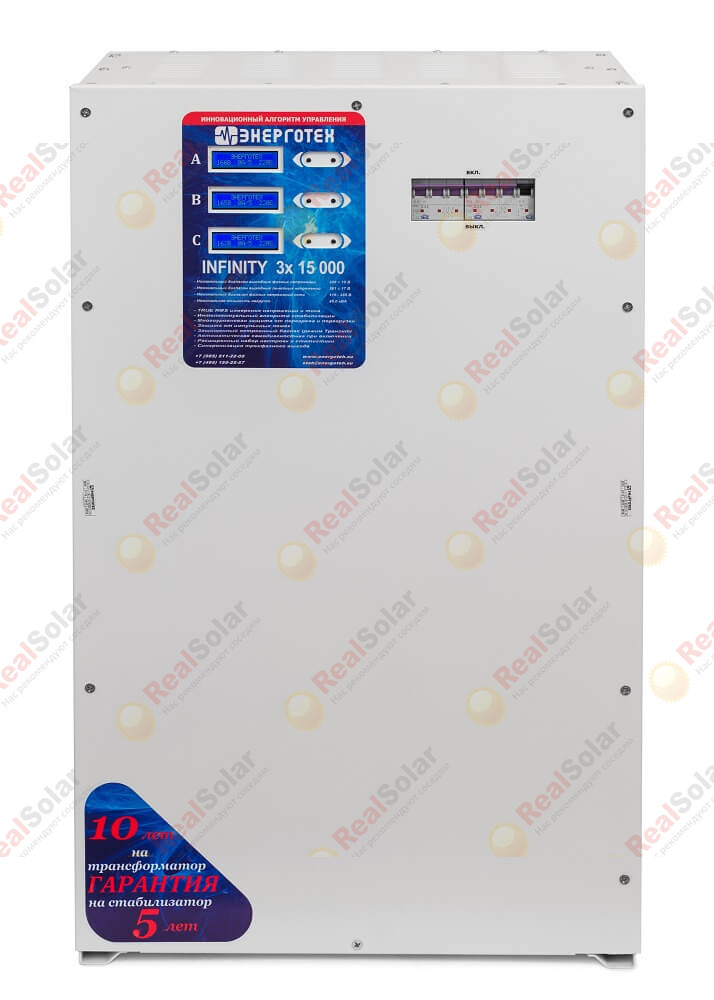 Бесшумный, быстрый и надежный трёхфазный стабилизатор напряжения Энерготех INFINITI 15000x3 российского производства