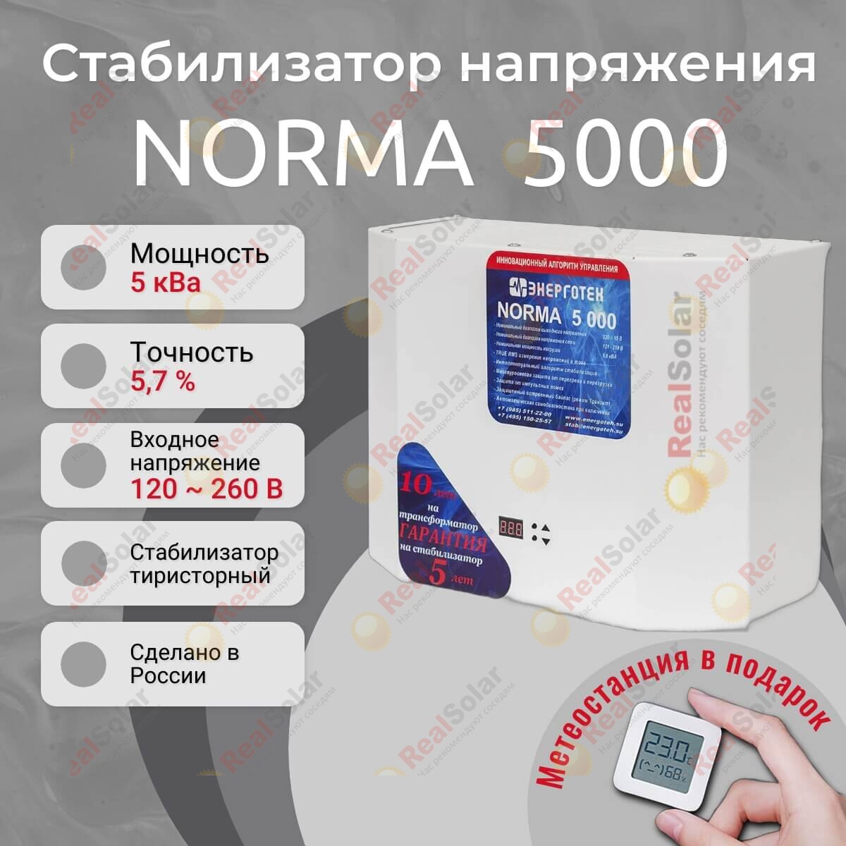 Технические характеристики стабилизатора Энерготех NORMA 5000: