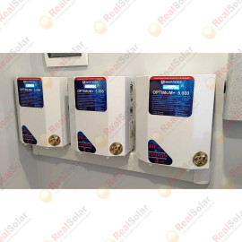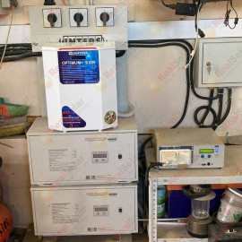 Трехфазные стабилизаторы работают с трехфазной сетью 380 В. Как правило, они рассчитаны на большую нагрузку (промышленное оборудование, офисы, квартиры, загородные дома). Трехфазный стабилизатор представляет собой три однофазных стабилизатора с общей защитной электроникой.