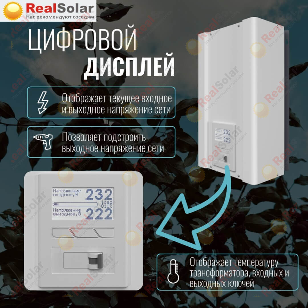 ТОЧНОСТЬ: Точность стабилизации 2,7% - от 210 до 230 В. В 95% случаев это достаточная точность для питания любых электроприборов в доме.